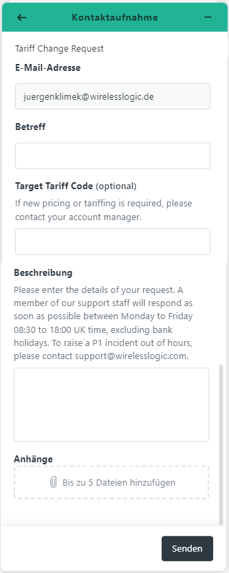 - Wählen Sie im folgenden Fenster Tariff Change Request:
