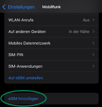 Wählen Sie 'eSIM hinzufügen' (bei manchen Geräten auch 'Mobilfunktarif hinzufügen' genannt).