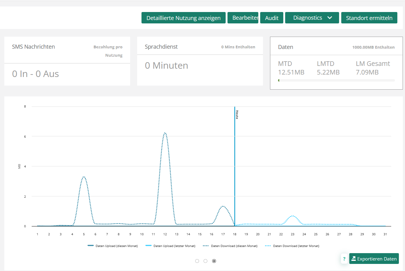 Zunächst können Sie den Verbrauch einer bestimmten SIM-Karte im Bereich SIM-Karten einsehen.