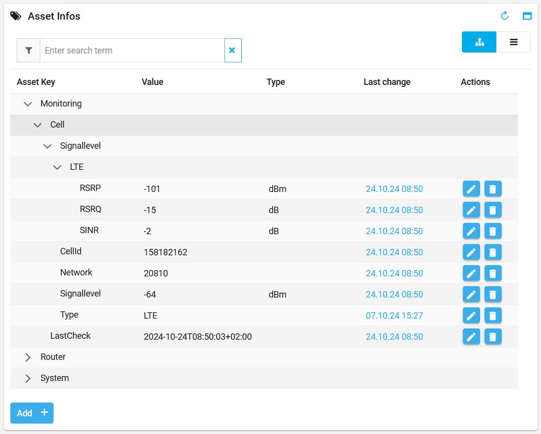 Note: The SNMP query of the router is initiated when the router has established a data connection and the SIM device is accessed in the portal. The first time the router is queried, it may take a few minutes for the router cards to be added and the current status information to be displayed. Pressing the F5 key restarts the router query and updates the display in the portal.