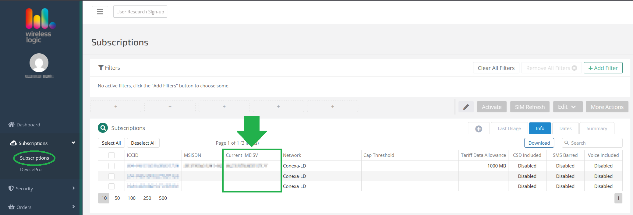 If our system has registered the IMEI of the device in which the SIM has been inserted, you will be able to find it in SIMPro at the SIM information: