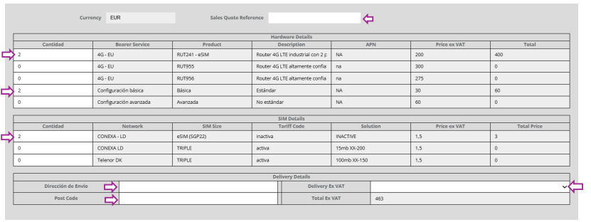 • Precio total del router+la SIM+la configuración (con IVA y sin IVA).