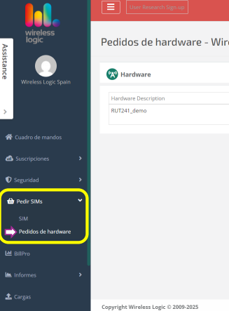 Abra Simpro en su navegador y en la columna izquierda acceda a la sección “pedidos de hardware”.