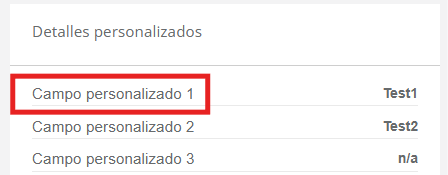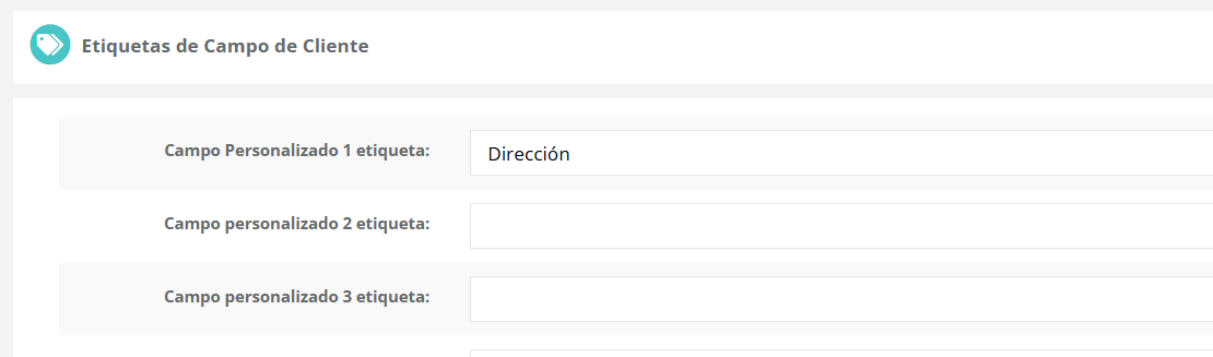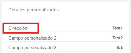 Es posible personalizar las etiquetas de los campos personalizados. Por ejemplo, si definimos "Dirección" en la etiqueta de campo personalizado 1, en lugar de mostrarse "Campo personalizado 1" se mostrará la etiqueta "Dirección" y a continuación el texto que usted haya definido en ese campo.