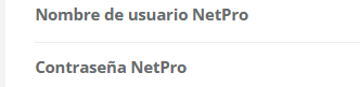 El usuario y contraseña para el APN viene indicado en el excel que se adjunta en el correo electrónico que se envía junto con la confirmación de activación de la SIM. También puede encontrar esta información en los detalles de su cuenta de facturación. Verá el usuario y contraseña identificados como "Nombre de usuario NetPro" y "Contraseña NetPro"